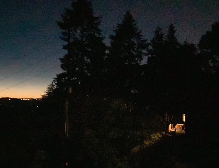 I go out late at night, to the balcony, chores done,